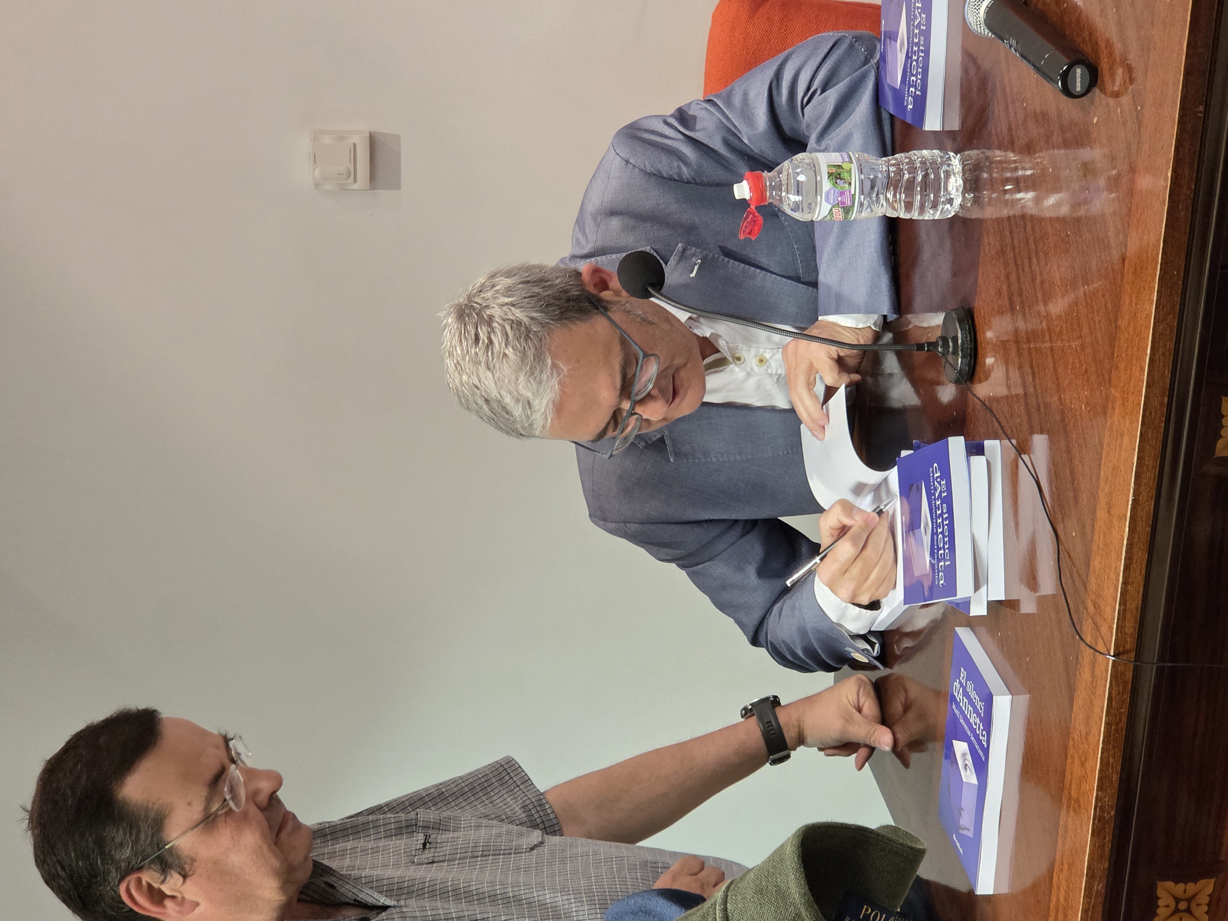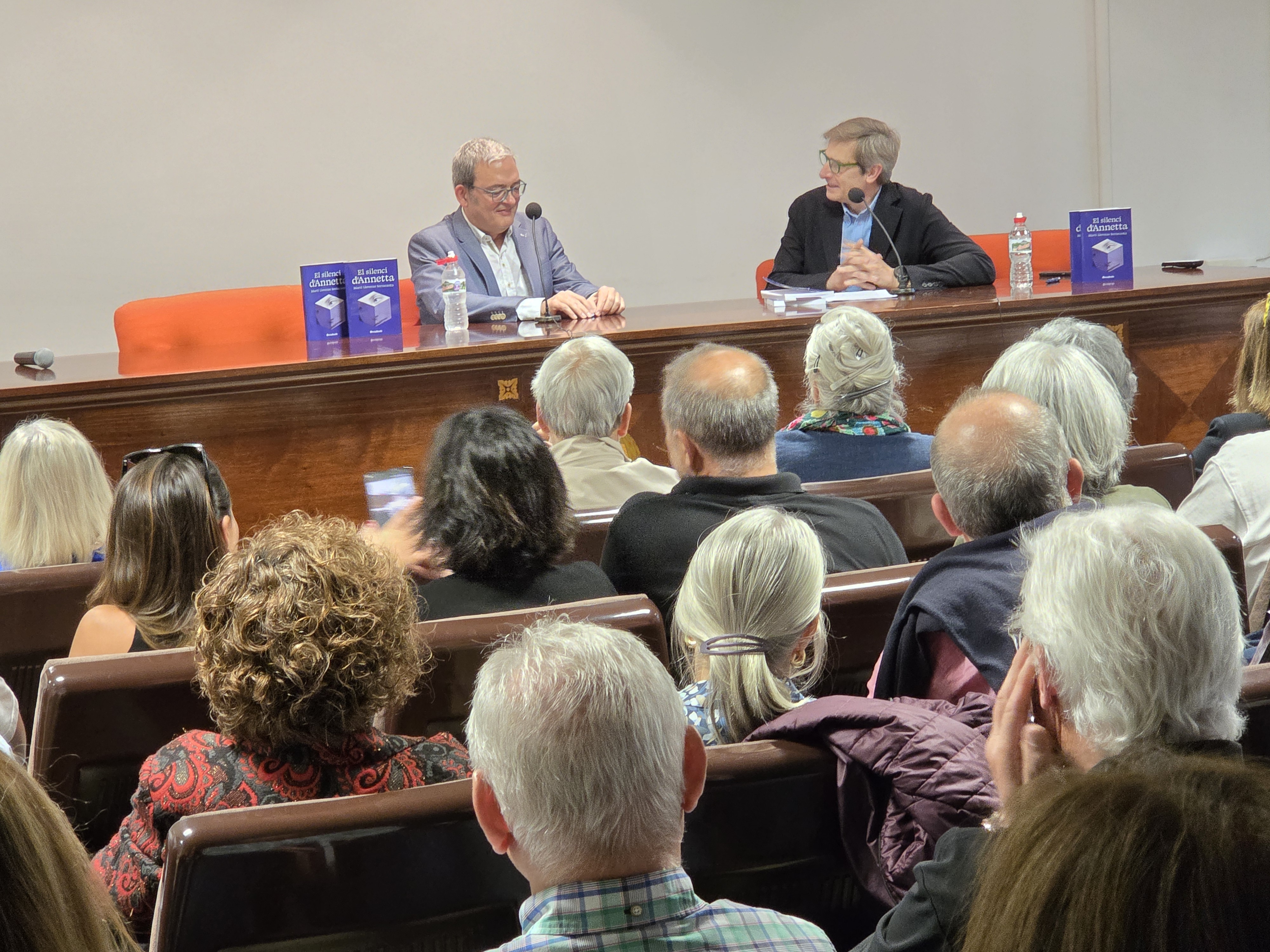 El silenci d'Annetta 2026-04-13 Davant d'una sala ben plena, Martí Lloveras, acompanyat del seu bon amic Pere Colomer, va realitzar la primera presentació de la seva primera novel·la: El silenci d'Annetta.